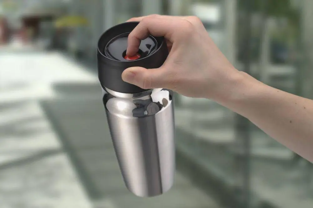 Wer kennt es nicht? Der Kaffee im Büro oder an der Autobahnraststätte ist ungenießbar und man wünscht sich, man hätte eine Tasse von zu Hause dabei. Mit dem alfi isoMug ist dies nun möglich. Halten Sie Ihre Getränke unterwegs für bis zu vier Stunden heiß oder acht Stunden kalt. Der Isolier-Trinkbecher ist aus schlag- und bruchfestem Edelstahl gefertigt und passt in alle gängigen Fahrzeuggetränkehalter. Der neue Verschluss lässt sich per Knopfdruck öffnen, ist zur Reinigung komplett zerlegbar und hält absolut dicht.