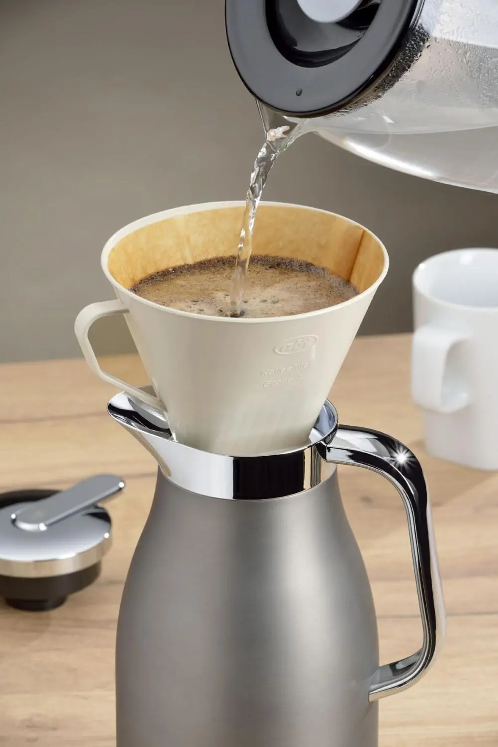Der Kaffeefilter ist aus aus nachhaltigem Bio-Kunststoff in Deutschland gefertigt. Dank dem Auslaufstutzen sitzt der Filter sicher auf einer alfi Isolierkanne und der Kaffee kann direkt in die Kanne fließen.
