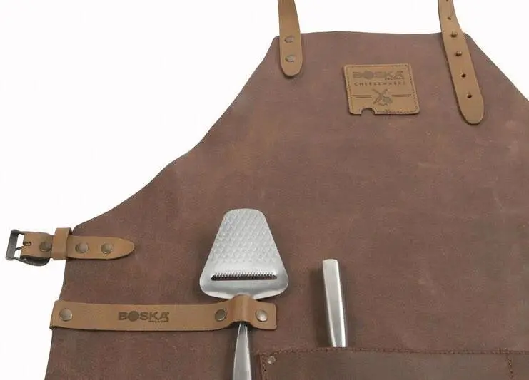 Boska Lederschürze Mr. Smith in braun. Ob zum Kochen oder am Grill, mit der Boska Lederschürze strahlen Sie Professionalität aus. Der stilechte Schutz vor Spritzern ist mit einer Fronttasche ausgestattet, in der die benötigten Küchenutensilien schnell Griff bereit sind.