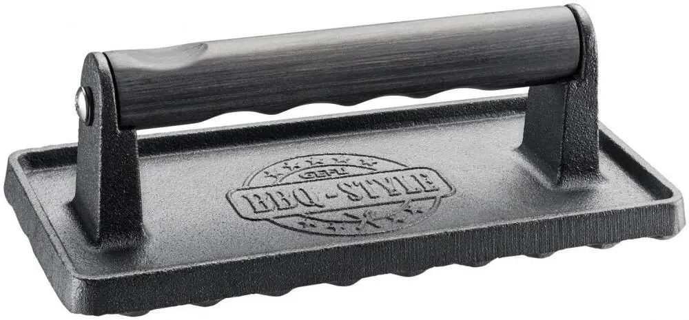 Wer kennt es nicht? Das dicke Steak oder der Burger-Pattie ist außen ganz verbrannt und innen noch blutig, roh. Das passiert mit dem Fleischbeschwerer aus massivem Gusseisen fortan nicht mehr. Einfach auf das Grillgut drücken und perfekt durchgebratenes Fleisch mit formtypischen Rillen erhalten.