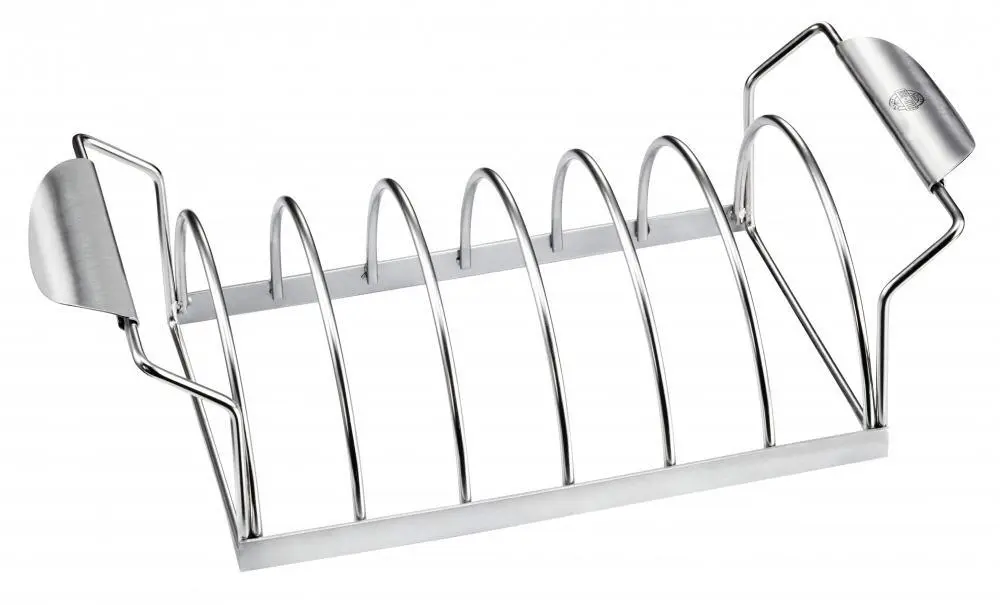 Mit dem GEFU Spare Rib Halter werden Rippchen knusprig gegrillt. Der Halter lässt sich ideal auf jedem Rost platzieren, fasst bis zu sechs Rippchen und kann auch für das Garen von Braten auf dem Grill oder im Ofen verwendet werden.