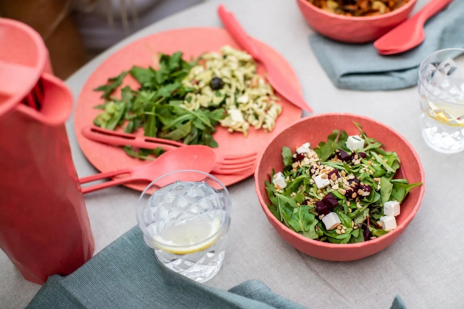 koziol Teller groß, 4er-Set in coral. Ideal für die Verwendung Outdoor, sei es im Garten, beim Camping oder beim Picknick.