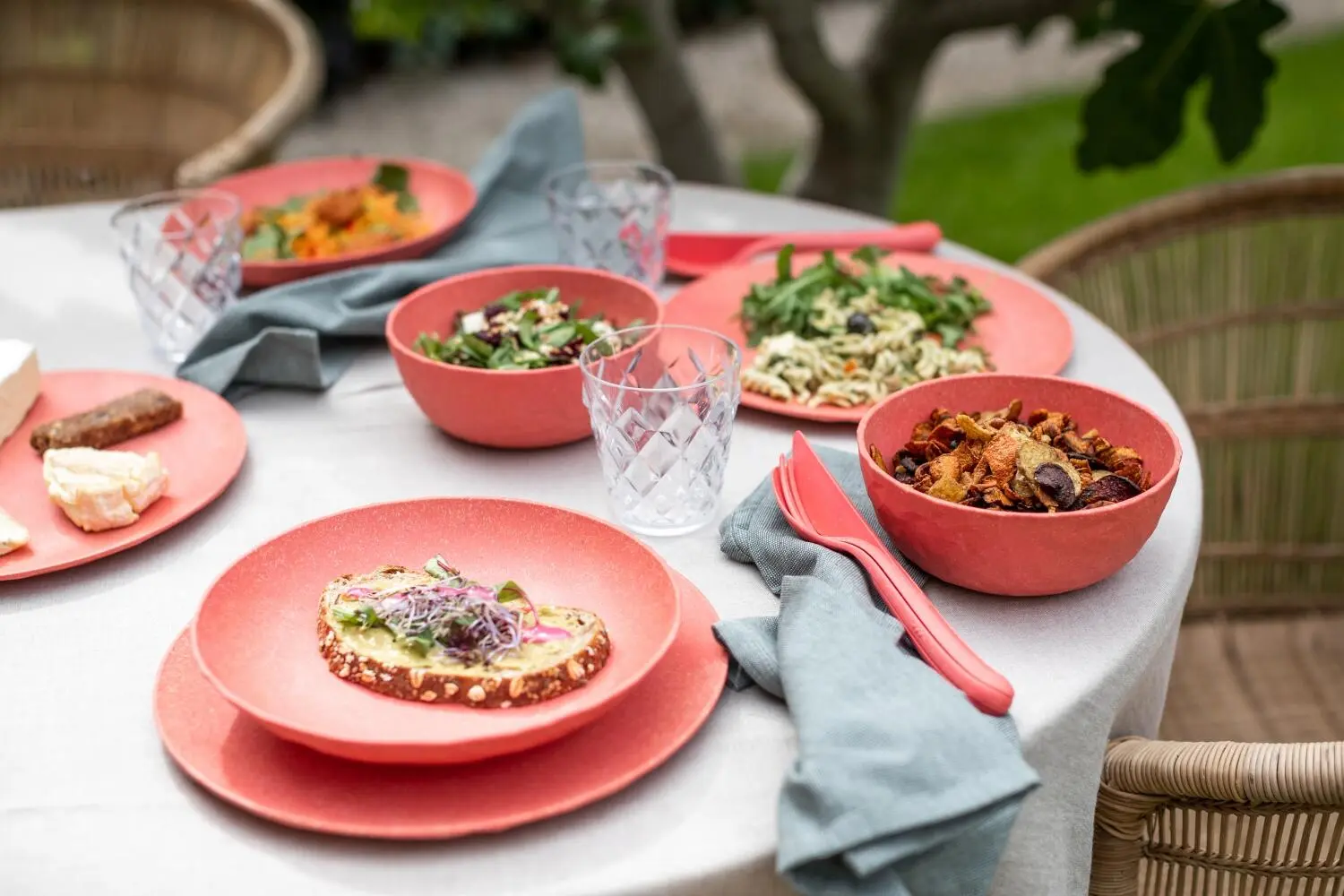 Die facettierten Teller sind wie eine frische Sommerbrise beim Outdoor-Lunch oder Terrassen-Dinner und halten auch turbulenten Feiern ohne jeden Scherbenhaufen stand. Ihre solide Materialität und die modernen Farben vermitteln stets das gute Gefühl eines schön gedeckten Tisches und bleiben dank ihrer schweren Qualität selbst bei einem kräftigen Windstoß stets standfest.