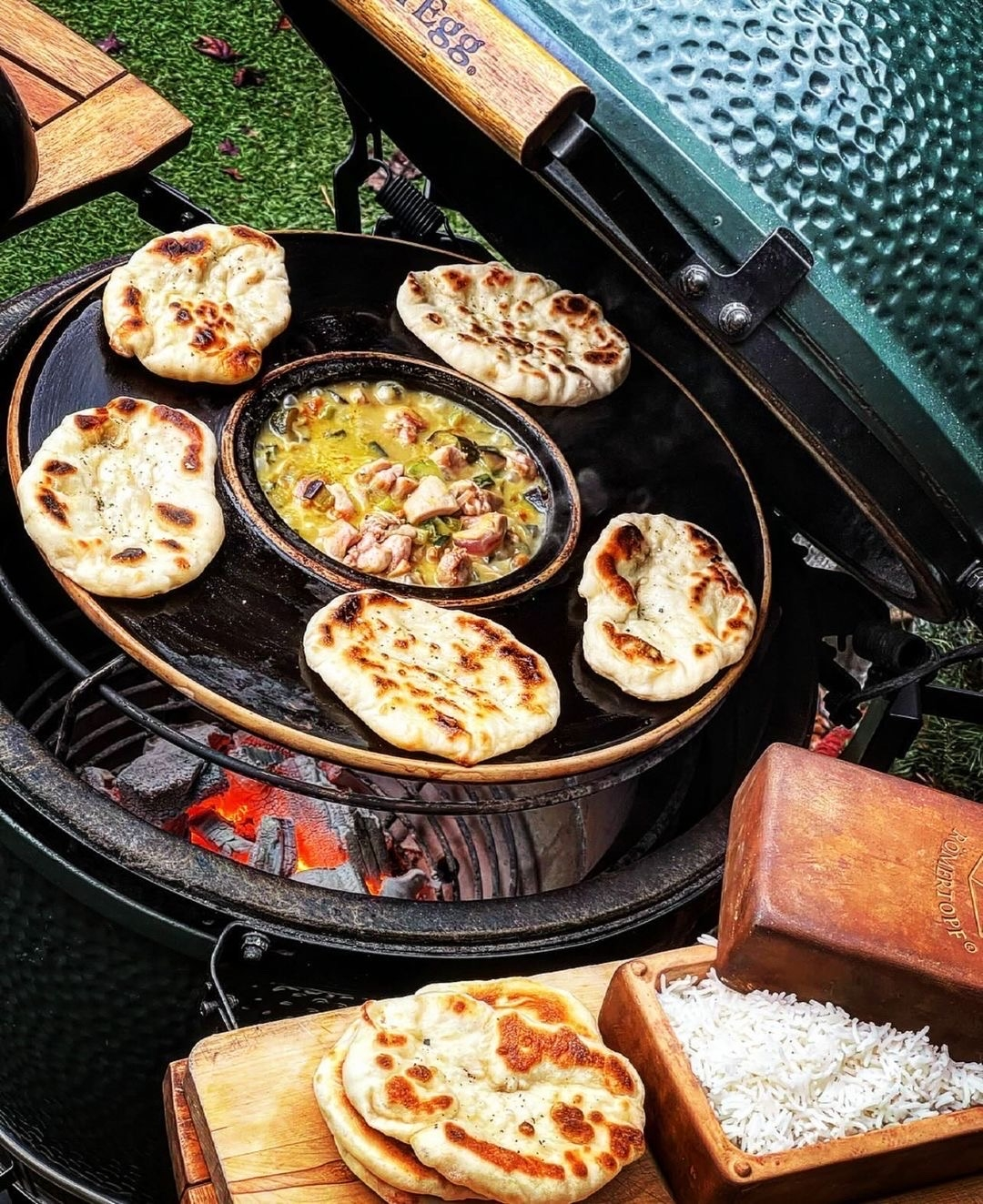 Das Grillporzelan von Römertopf speichert die Wärme lange. Außerdem hat der BBQ Planet eine grade Stellfläche am Boden und eigent sich daher auch gut zum Servieren am Tisch!