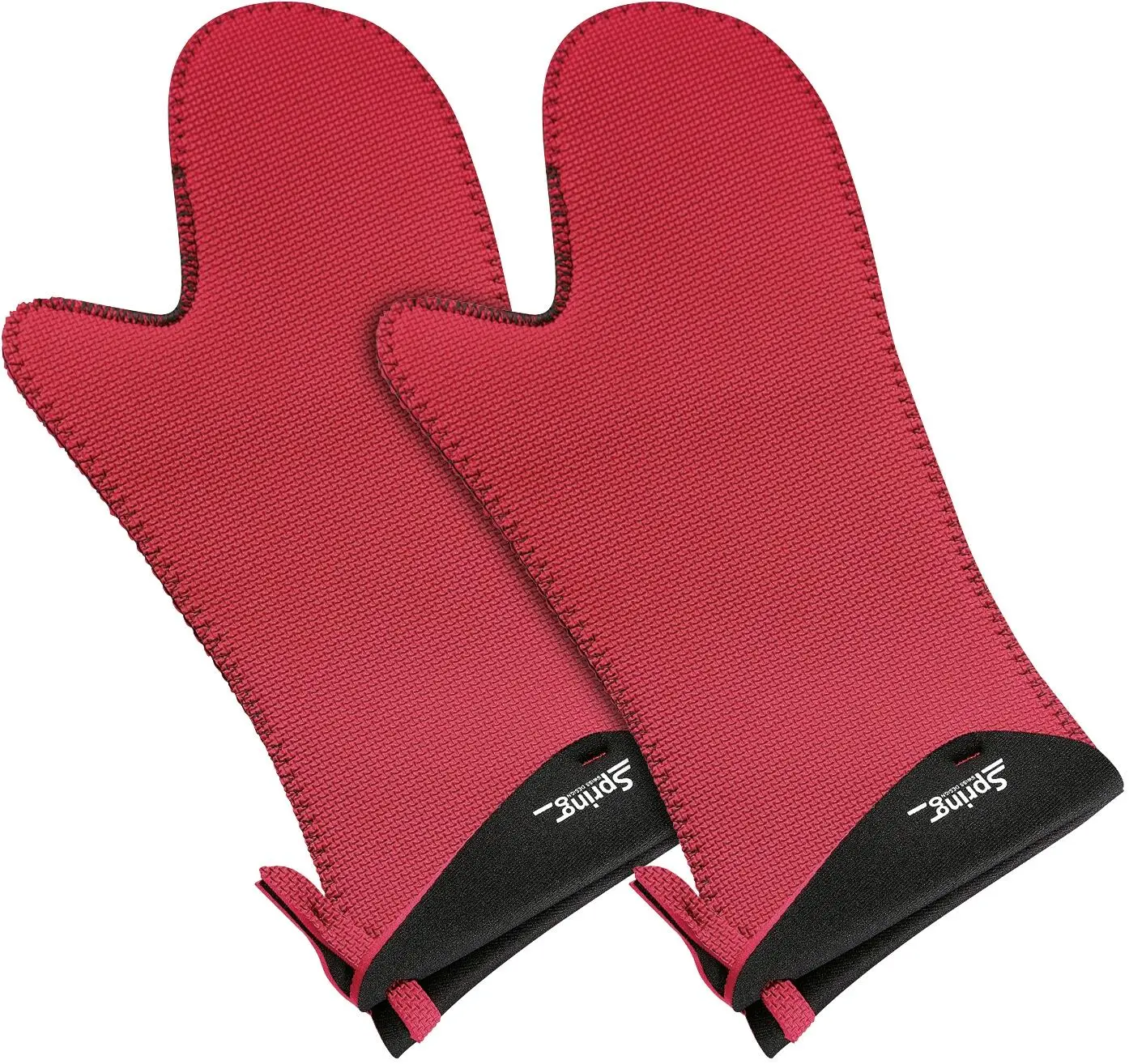 Spring Handschuh Grips lang in rot-schwarz, 1 Paar. Die Koch-, Back- und Grillhandschuhe aus innovativem, thermoresistentem Material.