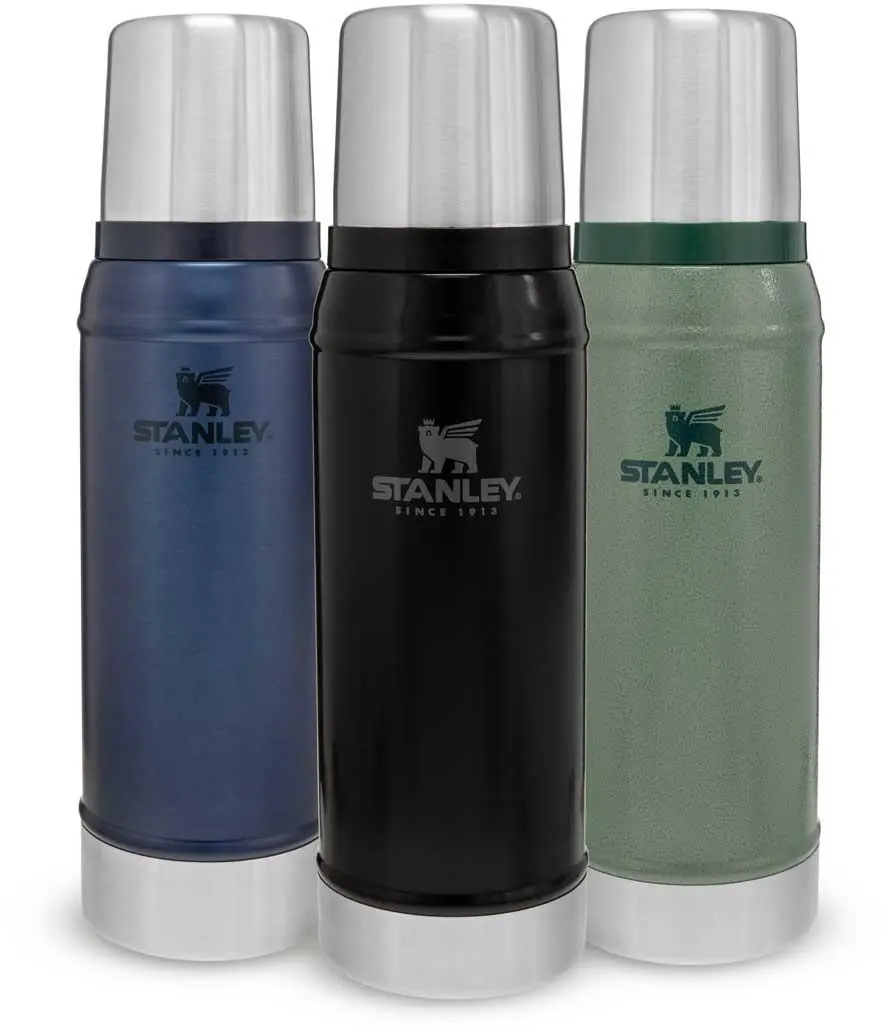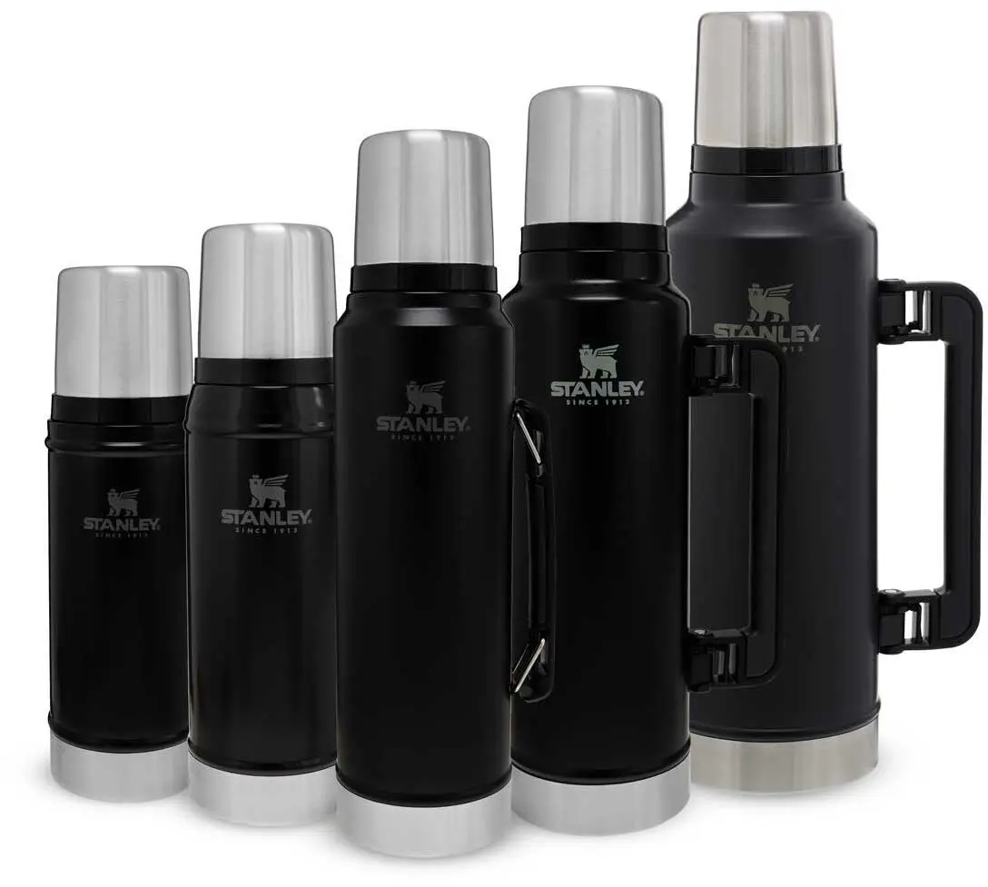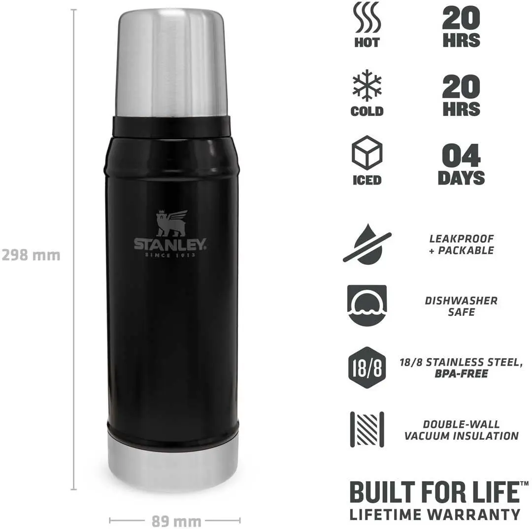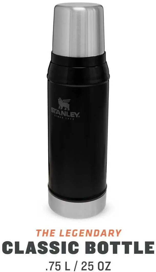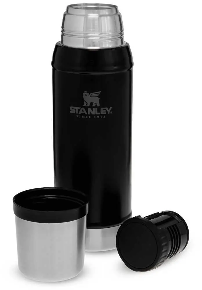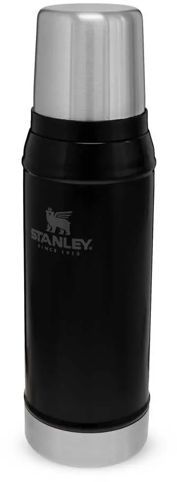 Die aus rostfreiem 18/8 Edelstahl gefertigte Stanley CLASSIC VAKUUM-FLASCHE ist mit einer schützenden, matt schwarzen Lackierung versehen. Die doppelwandige Vakuum-Isolation hält Getränke bis zu 20 Stunden heiß oder kalt. Über dem Flaschenverschluss sitzt ein Trinkbecher, der ebenfalls isolierend ausgelegt ist. Durch die 5 cm weite Öffnung lässt sich die Flasche sehr gut reinigen. BPA-frei!.