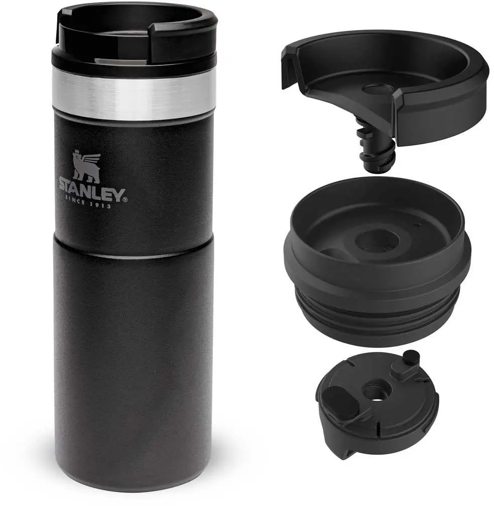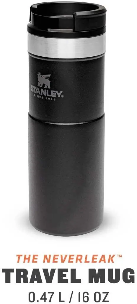 Mit dem Stanley NEVERLEAK TRAVEL MUG werden durch seine doppelwandige Edelstahl-Vakuumisolierung heiße Getränke bis zu 7 Stunden heiß und kalte Getränke bis zu 10 Stunden kalt gehalten. Der Trinkbecher aus rostfreiem 18/8-Edelstahl besitzt ein Fassungsvermögen von 473 ml und verfügt über einen einzigartigen 3-Positionen Deckel, der sich zum einfachen Trinken aufdrehen lässt und beim Schließen fest verriegelt. Der NEVERLEAK TRAVEL MUG ist komplett spülmaschinenfest, auslaufsicher und passt in gängige PKW-Getränkehalterungen. BPA-frei.